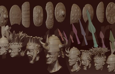 Here's a short vid, (https://youtu.be/4ZYGHc494rM?si=By6inzfBDAE9xyns) showing some of the model process on the shields, helmets, and spearheads, for the Philistine army. I still got leg greeves, shoulder pauldrons, and body armor, to go. Thanks for the support, it makes me wanna do late-nighters on all this stuff (which is a bad idea, in the longrun of the project).