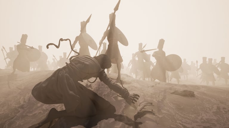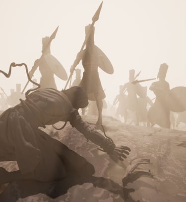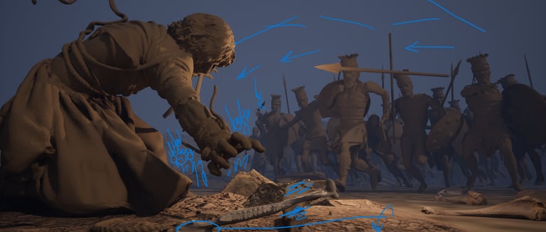So, as of late (https://youtu.be/YB50skkBmbQ?si=VMqhJ8oIudAMrc0q), I'm snooping around inside of Unreal Engine, looking to find a good heightmap to use for the desert battlefield scene. I also played with different export methods to send my philistine warrior into the battlefield, and after a couple of failures, failed again. But! But, then I got success, with an .fbx mesh even bringing in his test color information. This is great news, as I can do this with all the other guys I need to export. Hope yah like the vid and a big thanks for ya'lls support and God Bless.