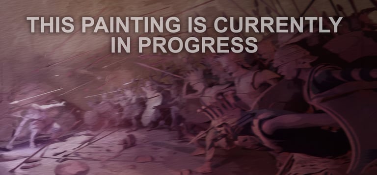 Latest update for everyone (https://youtu.be/spI1t9X0JP4?si=DhqQ2WDYgsZkAoO6)! I've made a side-scrolling video clip out of slowly moving down the philistine lines, until it ends at Samson. This will be used on youtube, to read out loud the Bible verse, associated with this moment. Also, I included some shots of various warriors, as well as different angles that I will make the actual painting from. I've had a few some snags, here lately, trying to derail my attention, but God's in this, so brace for impact. God don't quit,... ever. He sends me more iron through all different folks, so it's all good. When I get far enough along with this one, I might even step out and start up a new image soon.
