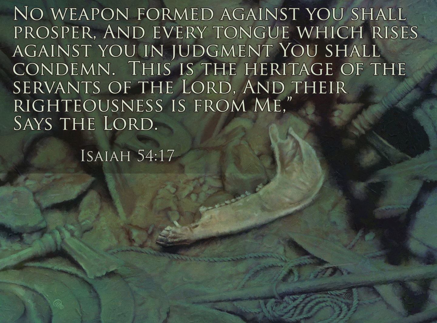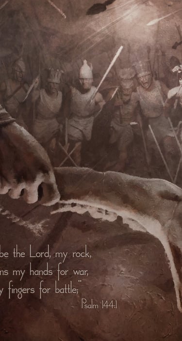 In the aftermath of a great battle, an animal's dried bone laid amongst piles of diverse weaponry. It surely must've looked pretty out of place, lying beside the latest cutting edge technology for weapon metallurgy. It's like Samson was surrounded by a ton of sharp, flesh cutting tools. And yet, there's that bone. Discarded, no longer of any value, without a second thought. I think sometimes folks mistake David's precision sling skills with what God actually did. Or Noah's seamanship, or Moses's persuasive speech,... it wasn't them. I think was to make a point "Here, swing this short dull bone around, I got this. I'll go before you, I'll do all the heavy lifting!!"