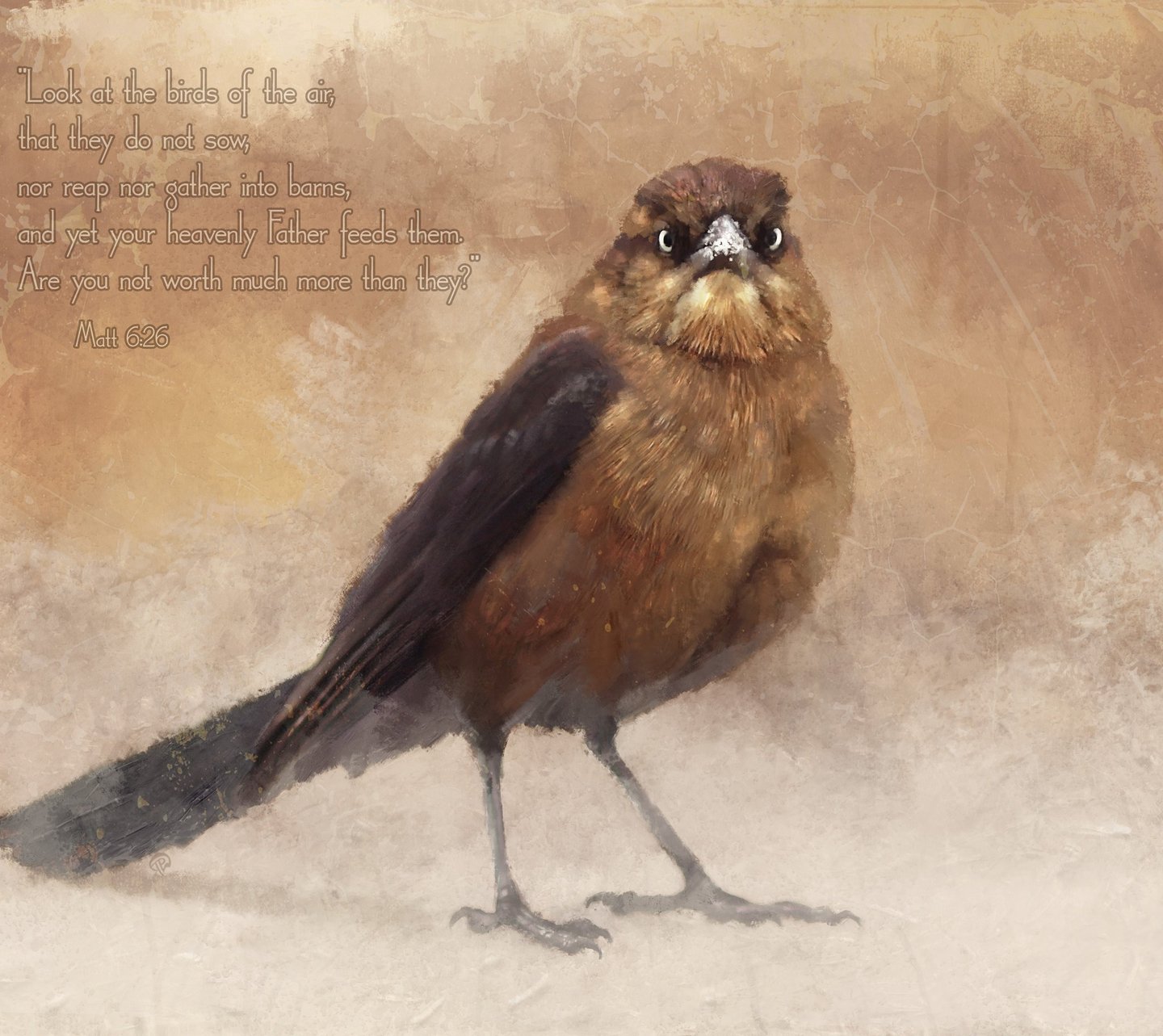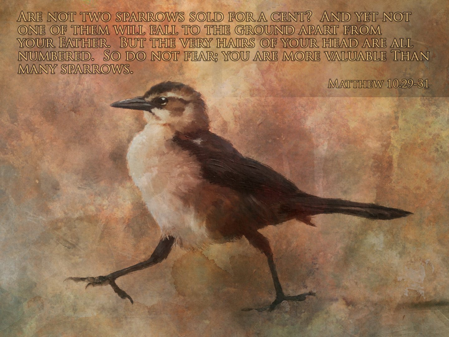 Common Birds seen just outside my window, survive predators, foul weather, times of food scarcity, cold nights, and rise up to make melodious tunes, in the morning. Jesus said His Father watches over them and provides what they need, so worrying is not something they do.